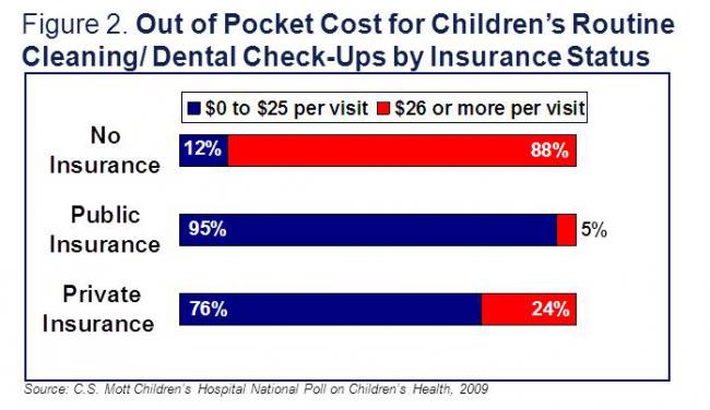 Costs can be problematic for children with private dental insurance, as well. Nearly a quarter of this group paid more than $25 out-of-pocket for a routine dental cleaning for their child; these higher out-of-pocket costs were linked to lower rates of regular dental care.