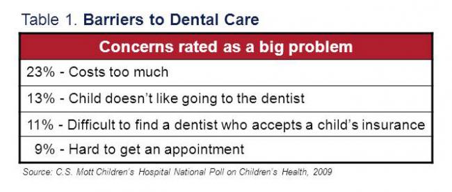 - Nearly one-quarter of parents report "costs too much" as a big problem in getting dental care for their children.
