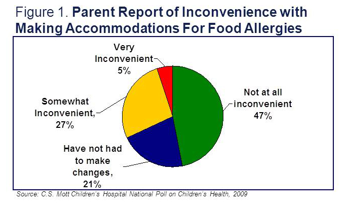 - About one-half of parents who know of a food-allergic child do not find it inconvenient to make accommodations for children with food allergies.
