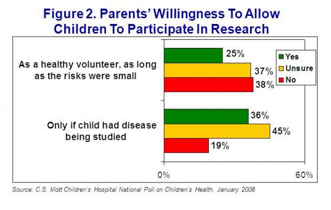 Davis MM, Singer DC, Butchart AT, Clark SJ. Children in research: Many parents willing if risk of harm is small. C.S. Mott Children’s Hospital National Poll on Children’s Health, University of Michigan. Vol 3, Issue 5, May 2008. Available at: http://mottpoll.org/reports-surveys/children-research-many-parents-willing-if-risk-harm-small.