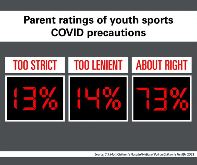 - 3 in 4 parents say their child’s sport is about right in their approach to COVID-19 precautions.